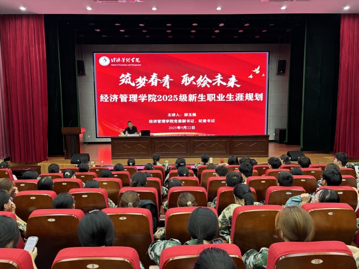 9月22日,76net必赢官网在横江校区报告厅举办“筑梦青春·职绘未来”2025级新生职业规划专题讲座。本次讲座由该院党委副书记、纪委书记郜玉振主讲,2025级全体新生参加。