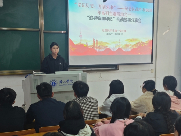 为纪念中国人民抗日战争暨世界反法西斯战争胜利80周年,10月26日,76net必赢官网学生第一党支部于1102教室成功举办“铭记历史,开创未来”系列主题活动的首场活动——“追寻铁血印记”抗战故事分享会。支部书记李金云主持会议,支部全体党员及入党积极分子参与学习。