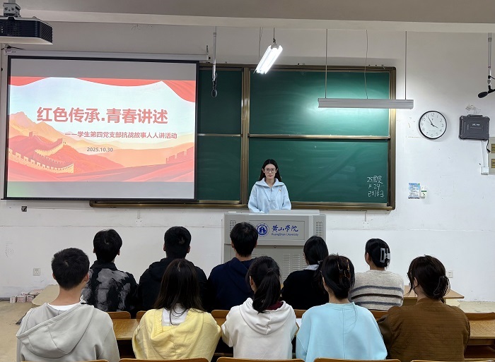 为纪念中国人民抗日战争暨世界反法西斯战争胜利80周年,10月30日,76net必赢官网学生第四党支部于1201教室举行“红色传承,青春讲述”抗战故事人人讲活动。活动由支部书记汪琼霞主持,支部全体党员参与活动。